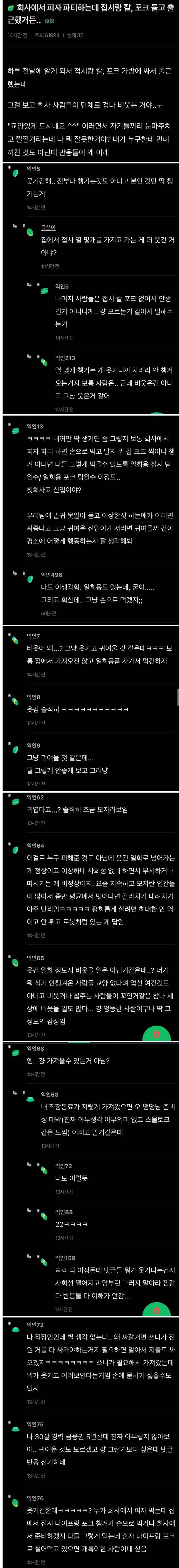 회사 피자 파티에 접시랑 칼, 포크 들고 출근한 사람