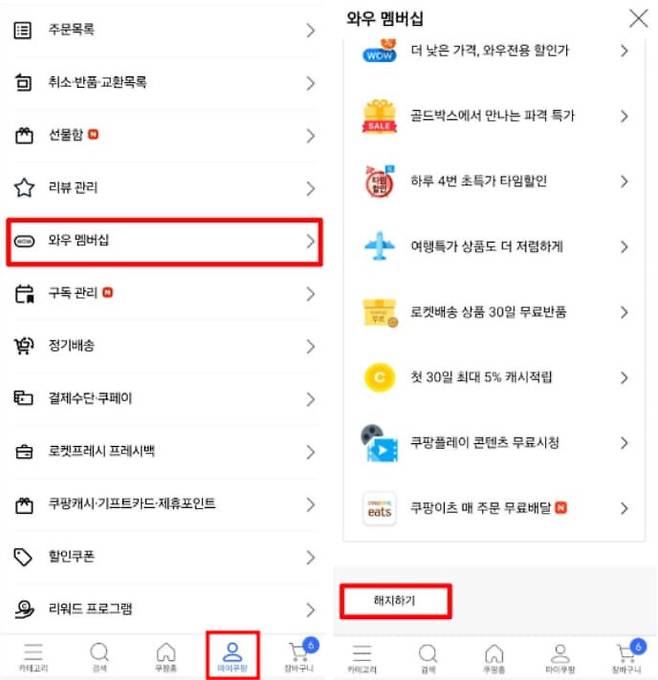 한편, 유료멤버십 ‘와우’ 회원에 가입한 상태라면 바로 계정 삭제가 어렵습니다. 탈퇴를 위해 유료멤버십을 우선 해지해야 다음 단계로 넘어갈 수 있습니다.