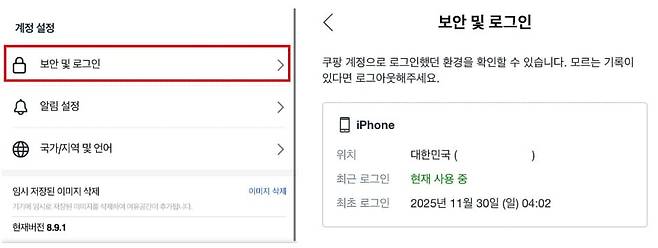 쿠팡, 로그인 했던 기기 모두 로그아웃