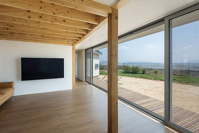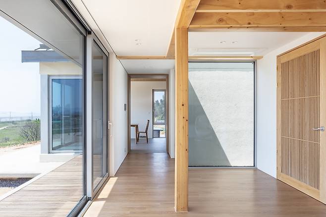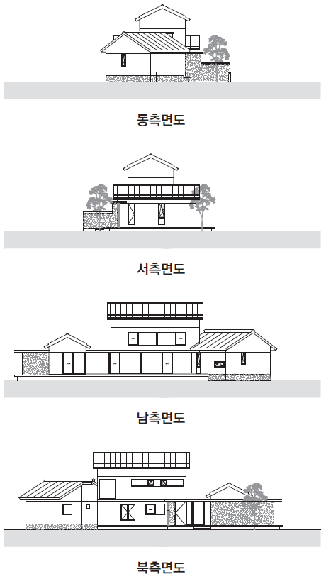 각각의 채에서는 멀리 펼쳐진 원경의 바다와 함께 시선을 반대로 돌리면 마을과 산도 볼 수 있다. 거실채, 안방채와 관계하는 뒷마당에는 낮은 담장을 두르고 그 안에 조경을 적절하게 계획해 근경 풍경도 마련하고자 했다.