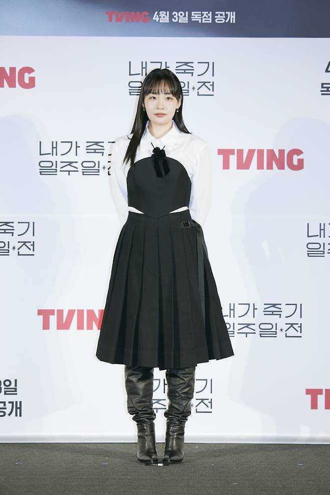 배우 김민하가 1일 오전 서울 용산구 CGV 용산아이파크몰에서 열린 티빙 오리지널 시리즈 '내가 죽기 일주일 전' 제작발표회에 참석했습니다.