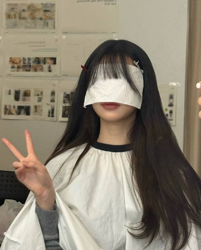 메이크업을 받던 장원영은 티슈로 얼굴을 가린 상태에서 손으로 V자를 그리며 장난기 넘치는 모습,
