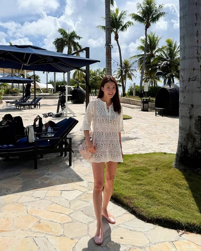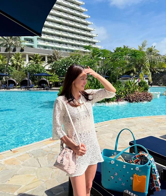 이시영은 오션블루 컬러를 선택해 여름 바다와 어울리는 상쾌한 분위기를 강조했다.