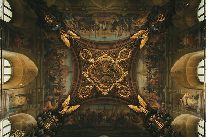 베르사유 궁전 입구 근처에는 천장화 '헤라클레스의 예찬'과 벽난로를 확인하실 수 있습니다.