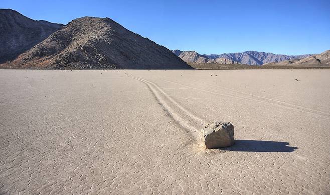 데스 밸리에서는 큰 돌들이 아무도 보지 않는 사이에 움직이며 긴 자국을 남기는 현상이 관찰되고 있는데요.