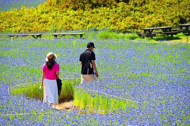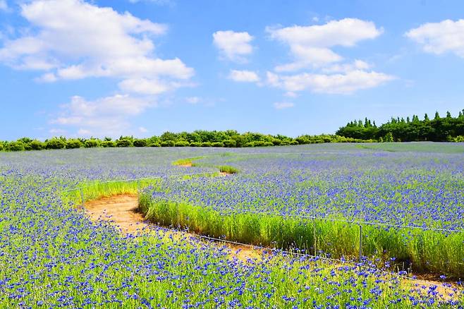 특히 햇살 가득한 낮 시간, 꽃과 하늘의 색이 맞닿을 때면 마치 유럽의 들판을 연상케 한다.