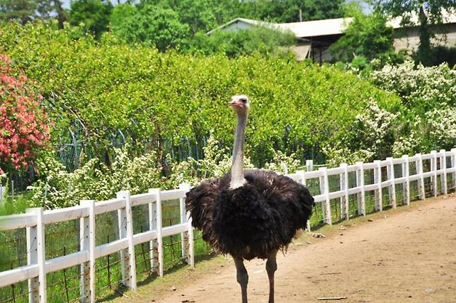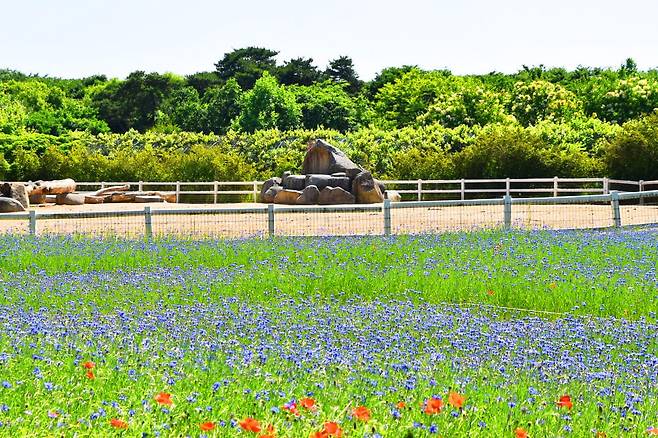 수레국화가 흐드러지는 초원을 걷다 보면 다양한 동물 체험 공간이 이어진다.