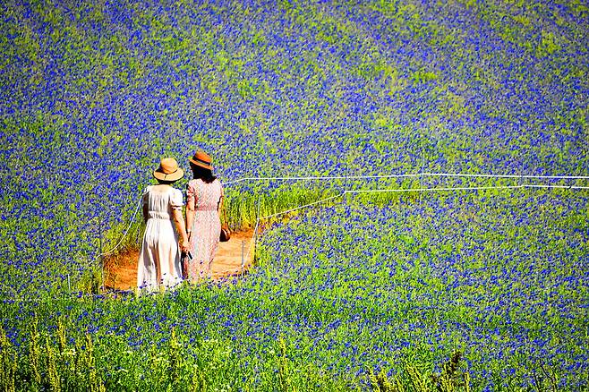 SNS에는 수레국화를 배경으로 한 인생샷이 연일 올라오고 있으며, 평일에도 삼각대를 든 사진가들의 방문이 이어진다.