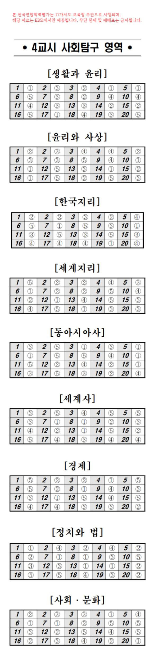 2024년 5월 모의고사 정답표는 다음과 같다.