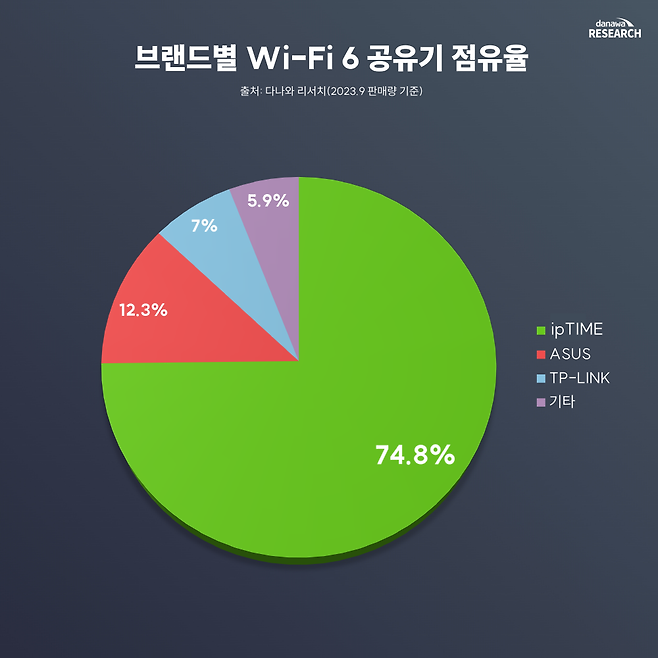 ■ 와이파이 6 공유기 점유율 (다나와 리서치 2023.9 판매량 기준)
