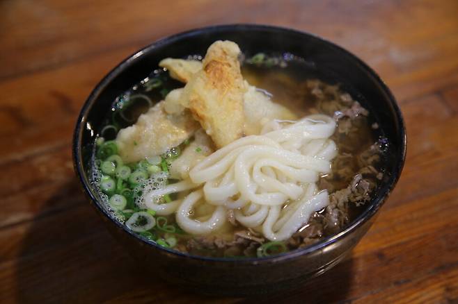 메뉴는 기본 우동인 카케 우동에 새우 튀김, 고기, 우엉 튀김 등 원하는 토핑을 주문하면 된다.