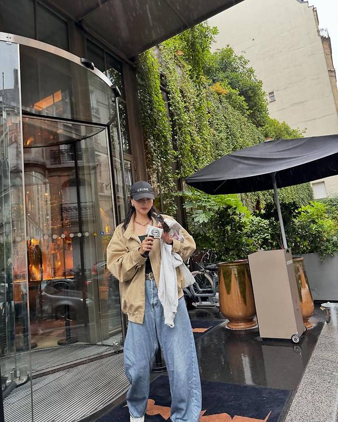 사진 속 오윤아는 블랙 탑을 이너로 입고 브라운 자켓과 청바지를 입고 캡모자를 써서 캐주얼한 코디를 선보였으며, 그레이 후드티와 청바지를 입고 파리 여행을 즐겼다.
