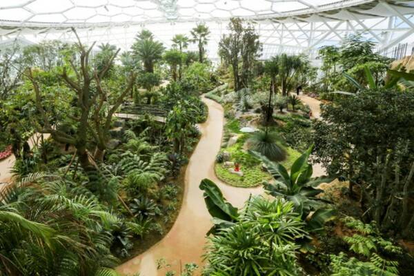 식물원 돔 내부는 일년 내내 동일한 온도를 유지하며, 총 면적이 2969㎡(약 900평)에 달하는 이 공간은 발 아래부터 천장까지 녹색 식물로 가득 차 있다.