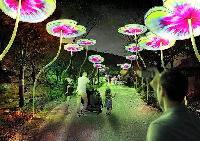 주제 공간으로는 ‘빛의 탑’, ‘북소리 빛나무’, ‘허왕후 연꽃길’, ‘홀로그램 정원’ 등 다양한 일루미네이션 콘텐츠가 준비되어 있으며, 특히 광화문과 DDP에서도 작품을 선보인 김영원 작가의 조각 작품이 빛과 결합되어 전시됩니다. 이는 조각예술과 미디어아트가 만나는 새로운 방식의 야간 전시로, 방문객들에게 색다른 감동을 선사합니다.