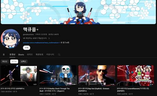 2위에 오른 '맥큐뭅'은 구독자 121만 명, 누적 조회 수 2억 8700만 회를 보유한 채널이다. 파란색 머리의 여고생 아바타를 내세워 활동하고 있는 채널 운영자 맥큐뭅은 VR 전용 리듬 게임 비트세이버의 플레이 영상을 주력으로 다룬다. 수준급 플레이 실력뿐 아니라 청순하고 귀여운 소녀 아바타의 이미지와는 거리가 먼 코믹하고 격렬한 '아재' 춤사위를 선보이는 반전 매력이 인기 비결로 꼽힌다. 채널 내 최고 인기 영상 '관짝 춤(전문가+)'은 무려 3000만 회가 넘는 조회 수를 기록 중이다. '슈퍼 마리오', '언더테일 리믹스' 등의 플레이 영상도 1000만 회 이상 조회 수를 올린 화제의 영상이다.
