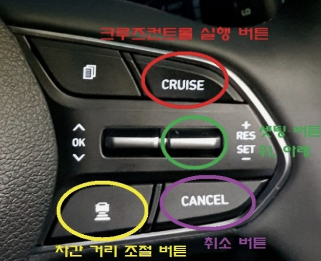 장대비가 쏟아지는 고속도로. 당신은 앞차와의 간격을 유지하며 달리는 것이 피곤하게 느껴져, 평소처럼 '크루즈 컨트롤' 또는 '스마트 크루즈 컨트롤' 버튼을 누릅니다.