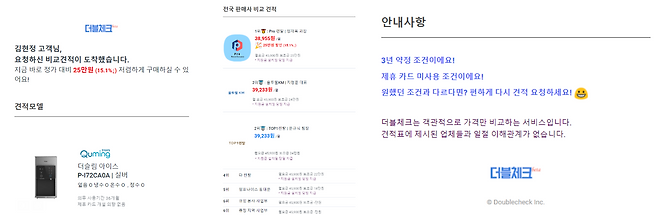 개인적으로 정수기 렌털을 알아보다가 느꼈던 불편함이 떠올랐다. “제품의 종류는 많은데 렌털 계약과 관련해 제대로 된 정보를 제공하는 곳이 없어서 애먹었어요. 온라인 검색으로 찾은 정보는 대부분 광고라 신뢰하기 어려웠죠. 구체적인 정보를 얻으려면 렌털 업자들에게 전화하거나 방문 상담을 받아야 했죠. 그렇게 연락이 닿으면 저마다 제시하는 조건이 달랐어요. 혼란스러웠죠. 최종 결정하기까지 한 달이 걸렸어요. 정수기 하나 설치하는데 이렇게까지 해야 하나 생각이 들었죠. 너무나도 불투명한 시장이었어요.”