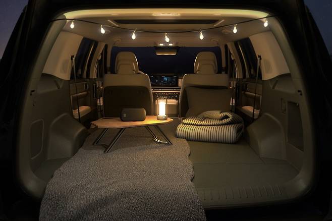 측면부는 길어진 전장과 리어 오버행, 짧아진 프런트 오버행, 쭉 뻗은 루프라인으로 안정적인 프로포션이 구현됐다. 플래그 타입 사이드미러와 함께 최대 21인치 휠이 제공된다. 각진 디자인의 2열 및 3열 윈도우는 과거 현대차 갤로퍼가 연상된다. 펜더는 볼륨감이 강조됐다.