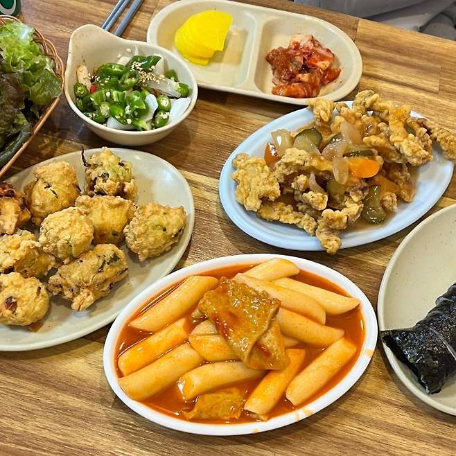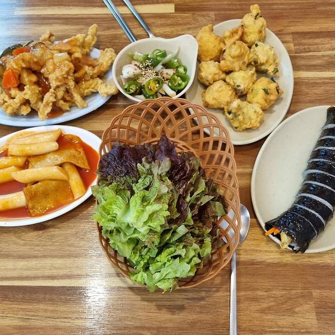 전주에도 상추 튀김을 하는 곳은 많지만, 단연 이곳을 꼽는 이유는 바로 기본에 충실한 분식의 맛이라고 말할 수 있다. 오징어튀김을 메인으로 하는 광주와는 다르게 다양한 분식 튀김을 상추와 함께 먹을 수 있다. 튀김으로는 야채, 계란, 김말이, 오징어 등 여섯 가지가 준비되어 있고 상추 튀김을 주문하면 모든 종류를 하나씩 내어준다. 광주의 사람들은 이건 상추튀김이 아니라고 할 수도 있지만, 단맛과 매운맛의 밸런스가 잘 잡힌 떡볶이와 튀김, 김밥 세 가지를 삼합으로 상추쌈으로 먹으면 색다른 맛의 상추튀김을 즐길 수 있다. 기본적으로 손맛이 좋은 집이라 다른 메뉴의 맛도 궁금하게 만드는 매력이 있는 곳.
