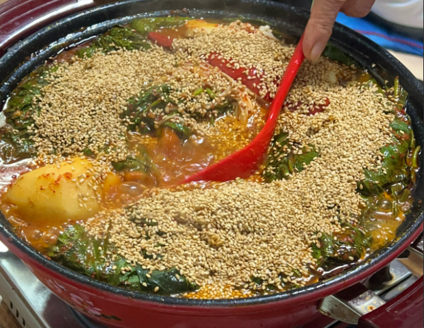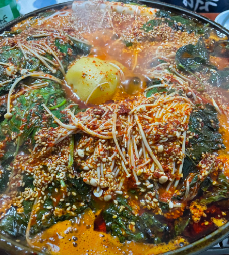 진한 양념과 푸짐한 구성→ 닭볶음탕에 깻잎, 팽이버섯, 통감자, 깨까지 듬뿍!→ 국물 맛이 자극적이지 않고 구수하면서 깊은 감칠맛