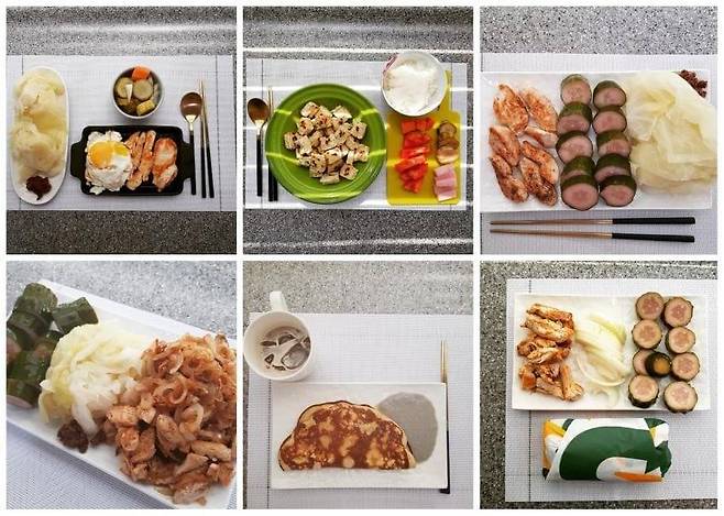 쌀밥, 위트빵, 닭가슴살 버터에 구운거, 직접 담근 피클...평소에 먹던걸 X3배로 먹는다.