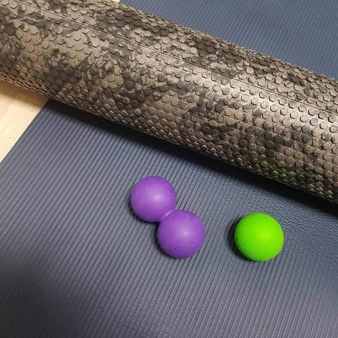 다이소 요가매트와 폼롤러, 마사지볼을 샀다.