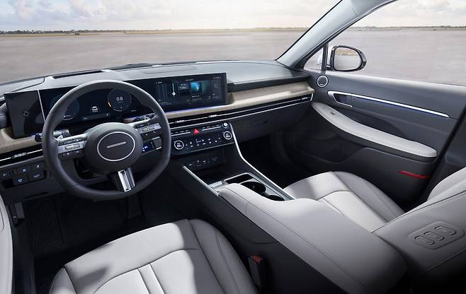 인테리어는 운전자 중심 구조를 계승하면서 섬세한 하이테크 디테일을 더해 프리미엄 세단의 감성을 구현했다. 특히 현대차 최초로 적용된 파노라믹 커브드 디스플레이는 운전석과 센터페시아까지 디지털 클러스터와 내비게이션 화면이 하나로 쭉 이어져 깔끔하고 세련된 인상을 남긴다.