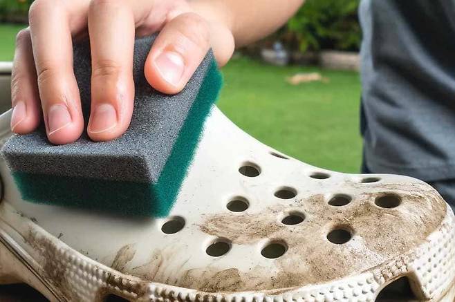 꼬질꼬질하게 더러워진 크록스는 주방세제와 치약으로 해결 할 수 있다. 따뜻한 물을 받아 준비해준 뒤 신발을 푹 담구어 준다. 이 상태로 10 분 정도 기다려주어 때를 불려주는 과정을 먼저 거친다. 그다음 주방 세제와 치약을 1:1로 섞어 만능 세제를 만들어준다. 이 만능세제를 크록스의 더러운 부분에 발라주며 얼룩을 지워내면 되는데, 진한 얼룩이 있는 곳이라면 만능세제를 두툼하게 올려 5분정도 기다려도 좋다.