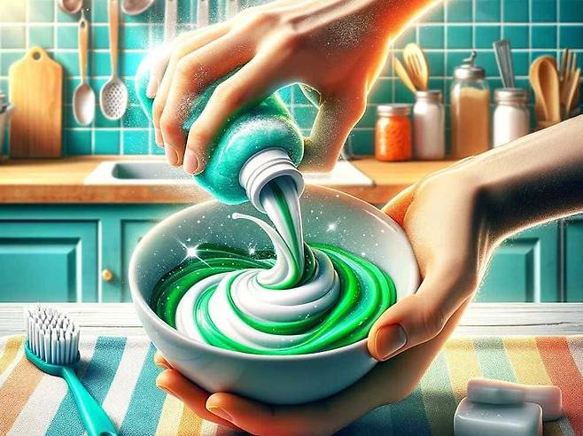 주방세제가 겉에 묻어 있는 오염물질을 지워주고, 치약의 연마제 효과로 미세한 얼룩을 지워주기 때문에, 이 두가지를 활용하면 더럽던 크록스도 금방 하얗게 변하는 것을 볼 수 있다.