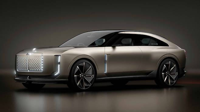 메이온은 벤테이가보다 크기는 작지만, 디자인 철학은 완전히 다른 차원이다. 짧은 오버행, 단단한 차체 비율, 매끈한 면 처리가 특징인 이 차량은 벤틀리가 지난 7월 공개한 전기차 비전 콘셉트 ‘EXP 15’에서 직접적인 영감을 받았다. 특히 눈에 띄는 것은 날카롭게 각진 헤드램프와 벤틀리 특유의 대형 매트릭스 그릴이다. 전기차임에도 불구하고 브랜드 아이덴티티를 포기하지 않겠다는 벤틀리의 강력한 의지가 엿보인다.