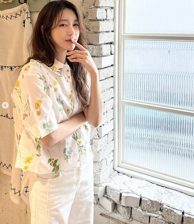 네번째 사진에서 이지아는 플라워 프린트 셔츠와 화이트 팬츠로 포근하면서도 밝은 무드를 보여주었다. 햇살 가득한 창가에 기대어 있는 모습은, 마치 한 편의 에세이 같은 따스함을 담고 있으며, 청순한 외모와 함께 편안한 패션까지 더해져, 보는 이로 하여금 미소 짓게 만드는게 그녀의 매력입니다.
