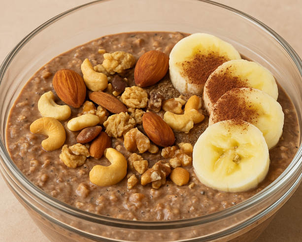 토핑으로 바나나, 견과류, 그래놀라, 시나몬 파우더 등을 추가하면 맛과 영양이 한층 업그레이드됩니다.