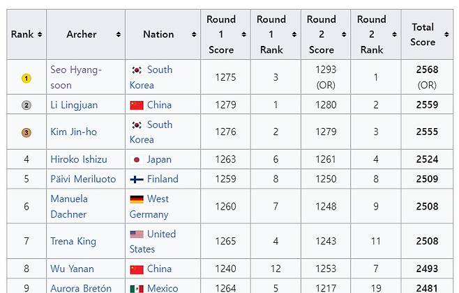 1988년 서울 대회에서 한 차례 변화가 있었다. 복잡해졌다. 개인전의 경우 FITA라운드로 시작했다. 상위 24명을 추렸다. 이때부터 4개의 거리별 각각 9발씩 총 36발을 쏘았다. 상위 18명을 8강에 올렸다. 이어 6명을 떨어뜨리고 12명을 준결선으로 올려보냈다. 여기서 또 상위 8명을 추렸다. 이 8명이 결선을 치렀다. 역시 36발을 쏘아서 최종 순위를 가렸다.