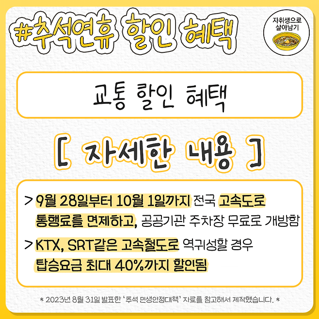 모르면 손해보는 추석 연휴기간 각종 할인 혜택