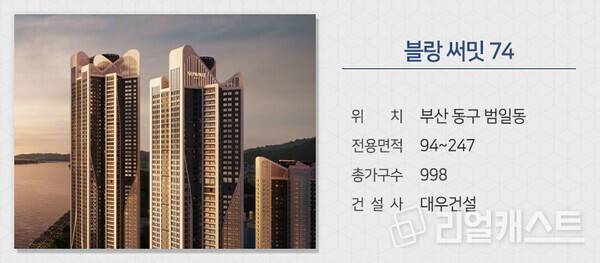 대우건설은 부산 동구 범일동에 짓는 ‘블랑 써밋 74’를 분양합니다. 최고 69층 초고층으로 아파트, 오피스텔이 함께 들어서는 주거복합 단지입니다. 고층부에 주민편의시설이 마련되며 부산도시철도 1호선 좌천역, 범일역과 2호선 문현역 등을 이용할 수 있습니다.