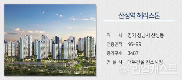 대우건설 컨소시엄은 경기 성남시 산성동에서 ‘산성역 헤리스톤’을 분양합니다. 총 3,487가구의 대단지로 지하철 8호선 산성역 초역세권입니다. 위례신도시와 가까운 입지에 성남북초, 단대초를 품은 초품아 단지입니다.