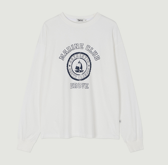 차정원이 착용한 긴팔티는 ‘그로브스토어’의 GROVE MARINE CLUB SWEATSHIRT로, 아이보리 컬러와 얇은 원단이 특징이다.