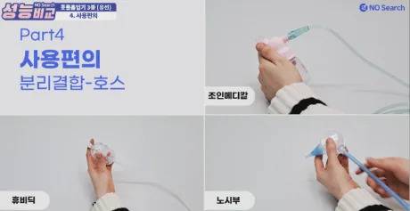 먼저 본체와 콧물통을 연결하는 호스는 모든 제품이 콧물통과 분리하는 데에는 큰 문제가 없었는데, 반대쪽 본체와 분리하는 데에 제품별 차이가 있었습니다.