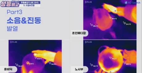 노시부가 발열이 가장 심했는데, 다른제품은 5도 내외의 변화를 보였지만, 노시부는 약 60도까지 온도가 올라갔습니다.