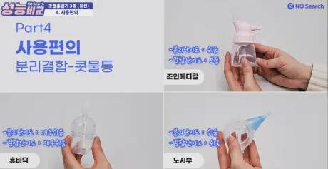 모든 제품이 한 번 사용하고 나면 바로 콧물통을 세척해야 하므로, 분리와 결합이 쉬워야 편리합니다.