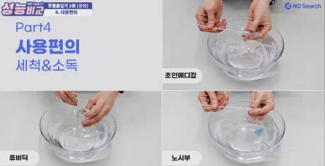 살균을 위해 세척뿐 아니라 소독하는 경우도 있는데, 가정에서 주로 사용하는 열탕소독은 조인메디칼 제품이 콧물통 부품 전체, 조인메디칼 제품이 콧물통 부품 전체, 휴비딕은 노즐, 노시부는 콧물통과 역류방지팁만 가능했습니다.