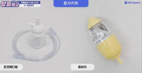 조인메디칼과 휴비딕은 콧물 흡입 외에 추가기능이 있습니다. 두 제품 모두 분사기능이 포함되어 있는데, 콧물 흡입 전, 식염수를 사용하여 콧속을 촉촉하게 하거나가벼운 코세척을 할 수 있습니다.