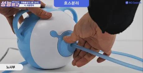 본체에서 분리할 때는 노시부가 가장 편했는데, 대신 호스를 잡아주는 마개 부분이 살짝만 돌려도 분리되어 의도치 않게 빠지는 경우가 있어서 아쉬웠습니다.