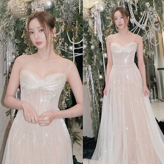 공개한 사진에서 채수빈은 반짝거리며 시스루빛이 도는 시스루 글리터 슬립 드레스룩으로 청순하면서도 우아한 여신미를 드러냈다.