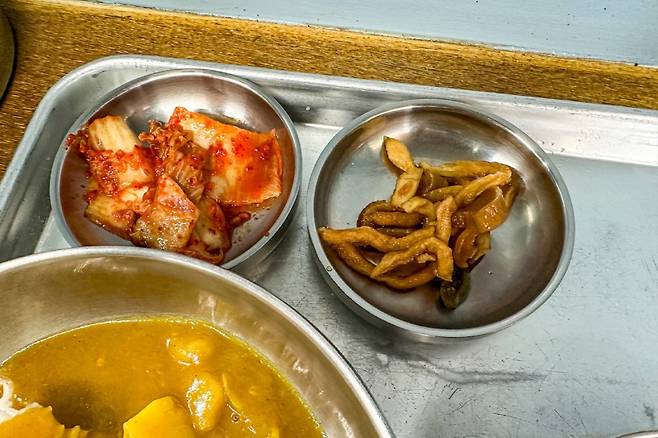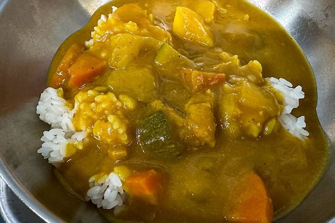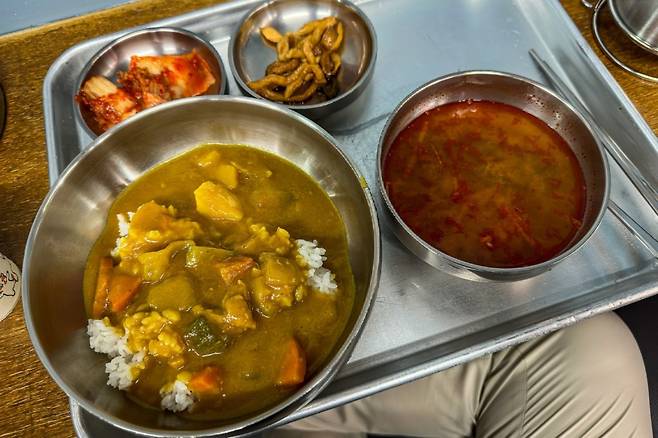 계산을 마치고 나오는데, 다음에 올 때는 가게가 이전한다고 한다. 꼭 오라고 신신당부. 그리고 한 달 정도가 흐른 뒤에 이전한 가게로 다시 찾아갔다. 여전히 메뉴는 같은 메뉴를 준비하고 계신다. 이번에는 카레를 시켜봤다. 그랬더니 지난번과는 반대로 카레가 메인이고 따로 국을 내놓는데 바로 소고기국밥에 나온 그 국이었다. 오호 이 반대의 조합도 아주 괜찮구나.