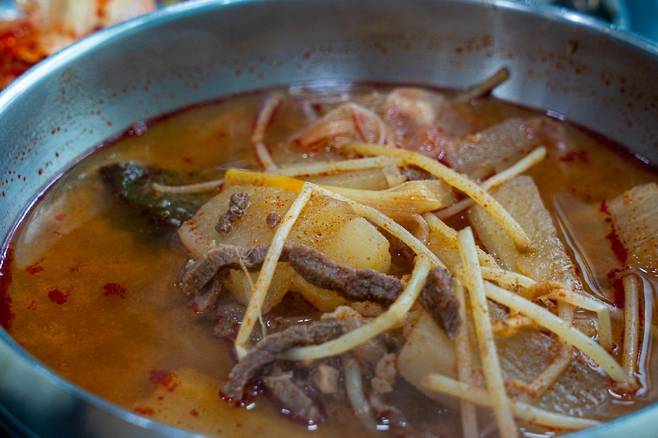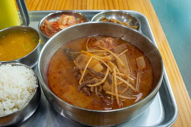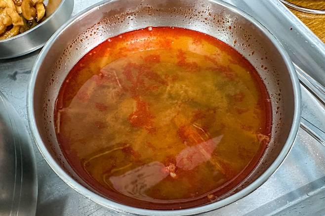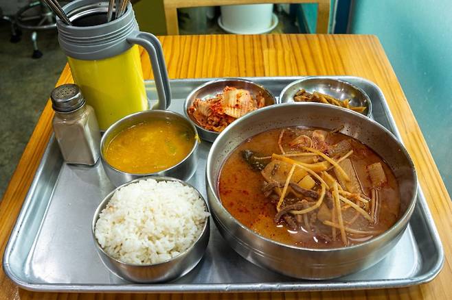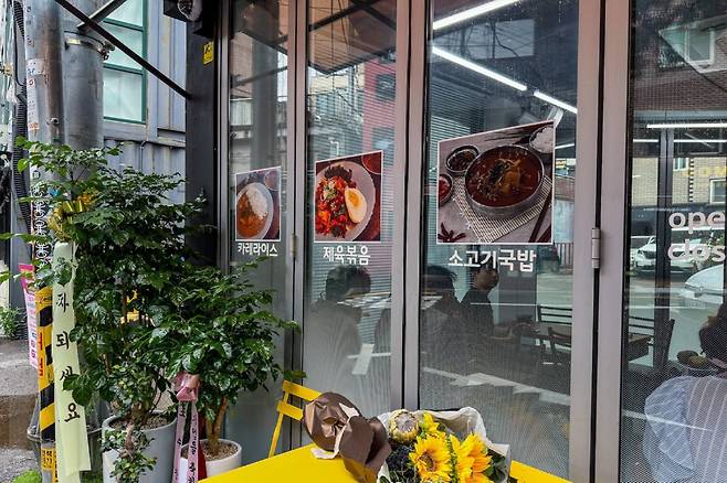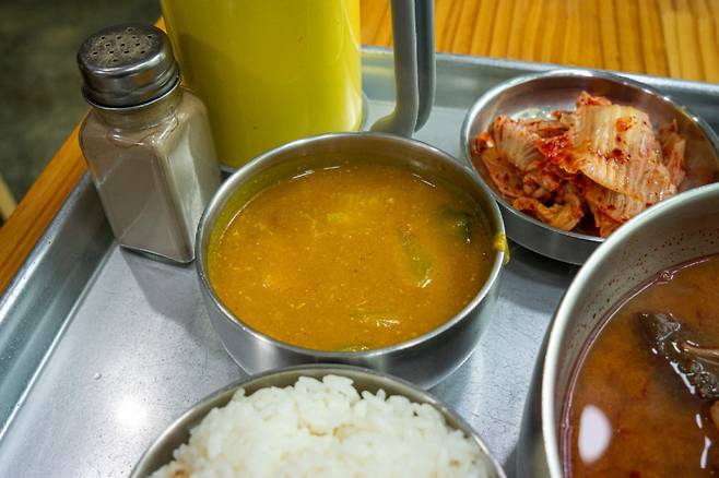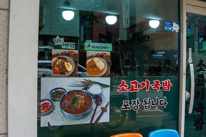 처음 이 집을 발견했을 때는 소고기국밥이라는 크고 붉은 글씨 때문이었다. 날도 더운 여름이었는데 따끈한 소고기국밥 한 그릇을 주문하니 의외로 카레 한 사발을 같이 주신다. 혼자 열심히 일하시는 아주머니 덕분에 감사하게 먹어야겠다는 생각이 들 정도로 에어컨 하나가 참 힘들게 가동되고 있었다.