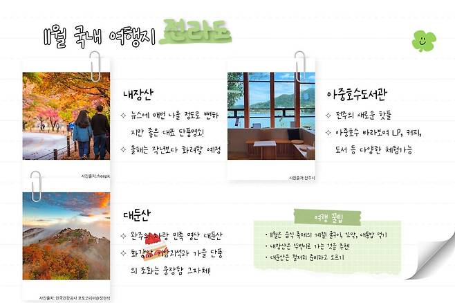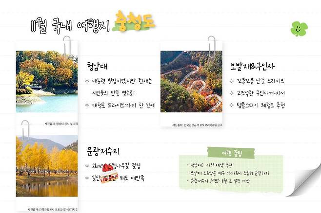 오늘 소개한 11월 국내 여행지 추천 리스트가 도움 되셨길 바랍니다.
