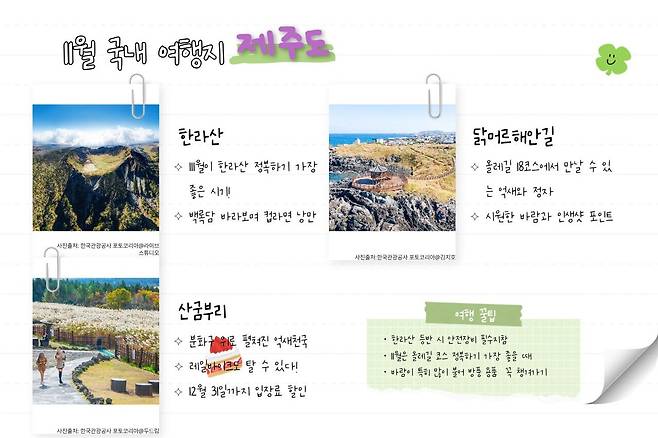 그래서 11월 국내 여행지 추천 지역으로 제주도는 빼놓을 수 없습니다.