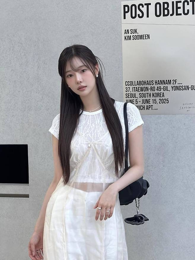 전시 공간 앞에서 포착된 이시안의 인스타그램 사진이 장마 전 마지막 데이트룩으로 주목받고 있다. 배경은 서울 용산구 콜라보하우스 한남의 전시 공간으로, 감각적인 도시 미감이 그녀의 청순한 스타일링과 절묘하게 어우러진다. "장마 전에 야외데이트 해야 한다구☔️……"라는 멘트는 다가오는 계절 변화와 함께 로맨틱한 무드를 배가시킨다.