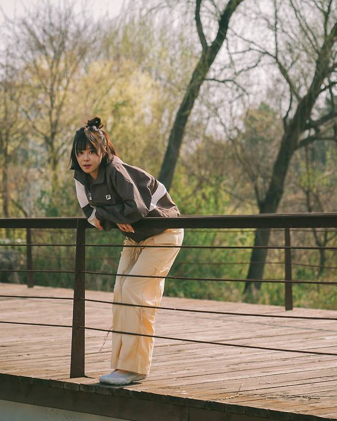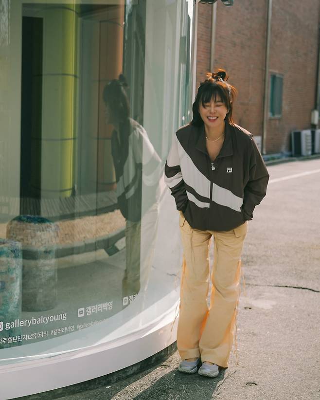 사진 속 최강희는 스포티한 팬츠와 휠라 바람막이를 매치해 캐주얼한 패션을 선보였습니다.